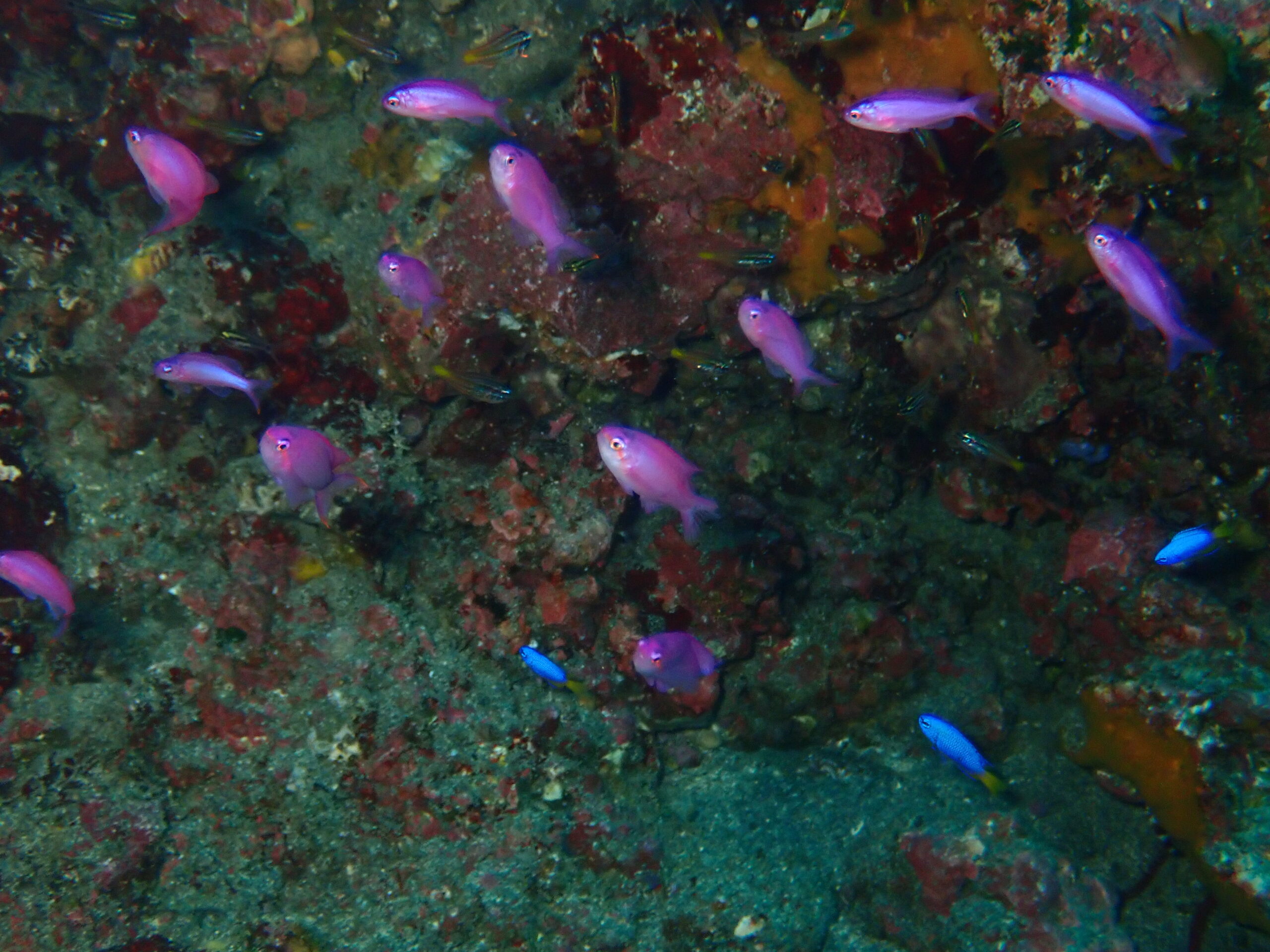 水深20m以上は水温が怖くて主に浅場を中心に回りました。